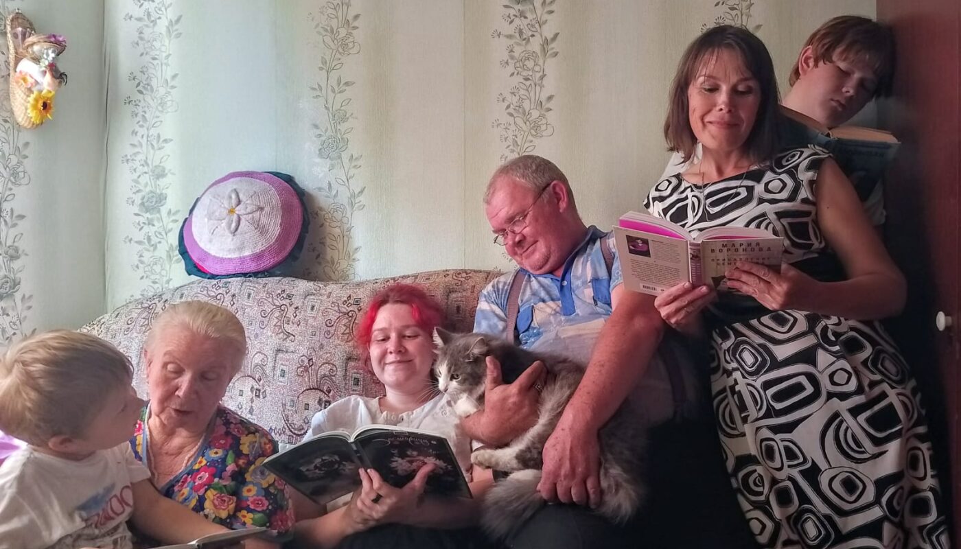 Многодетная семья Бурмистровых уже определилась: она точно будет участвовать в конкурсе. Ничего удивительного в этом нет – здесь все дружат с книгами. Глава семейства Вячеслав Владимирович предпочитает фантастику, причём читает в основном в электронном формате. Наталья Евгеньевна, наоборот, предпочитает книги только в бумажном варианте; любит классичес- кую литературу, в том числе зарубежную. Привычку читать от родителей переняли и дети. Старшая Анна увлекается произведениями в стиле фентези и с каждой зарплаты покупает новые книги. Дарья не только много читает, но и пробует себя в прозе, кстати, вполне успешно. Девятиклассник Георгий буквально «нашпигован» разнообразной информацией, которую черпает как из книг, так и из Интернета. Четырёхлетний Митя читать пока не умеет, но очень любит слушать русские народные сказки. Бабушка Зинаида Сергеевна не отстаёт от детей и внучат – она тоже большая любительница чтения, правда, с недавних пор перешла на аудиокниги.