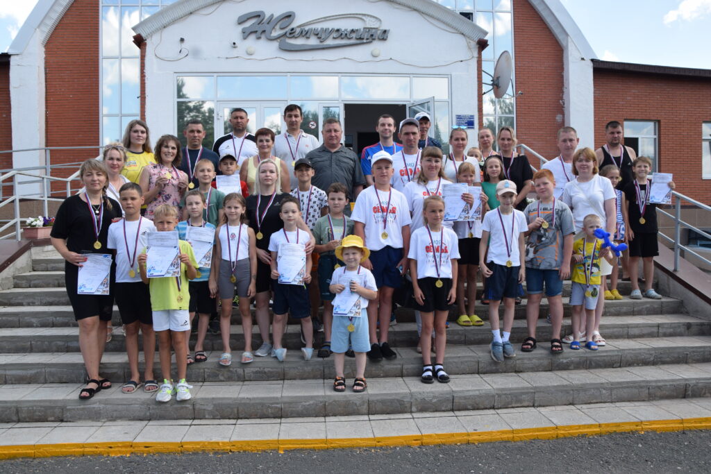 В 11:00 на дорожки вышли самые юные участники. Первыми – ребята 2-5 классов, затем состоялся семейный заплыв. Родители с детьми преодолели свои дистанции. В заплывах приняли участие 15 семей: Шуваловых, Чесноковых, Курочкиных, Ласыгиных, Металловых, Артемьевых, Мурсалимовых, Утягуловых, Бирюковых, Бурмистровых, Насекиных, Насыровых, Ждановых, Гайнуллиных, Кожевниковых. В итоге каждая семья была награждена медалями. Особенно чествовали аплодисментами семью Кожевниковых, она в текущем году заняла второе место в области на соревнованиях спортивных семей, проводившихся в зачёт XXI областных летних сельских спортивных игр «Золотой колос Оренбуржья». Также всем семьям глава района вручил подарочные сертификаты на посещение бассейна в августе.
