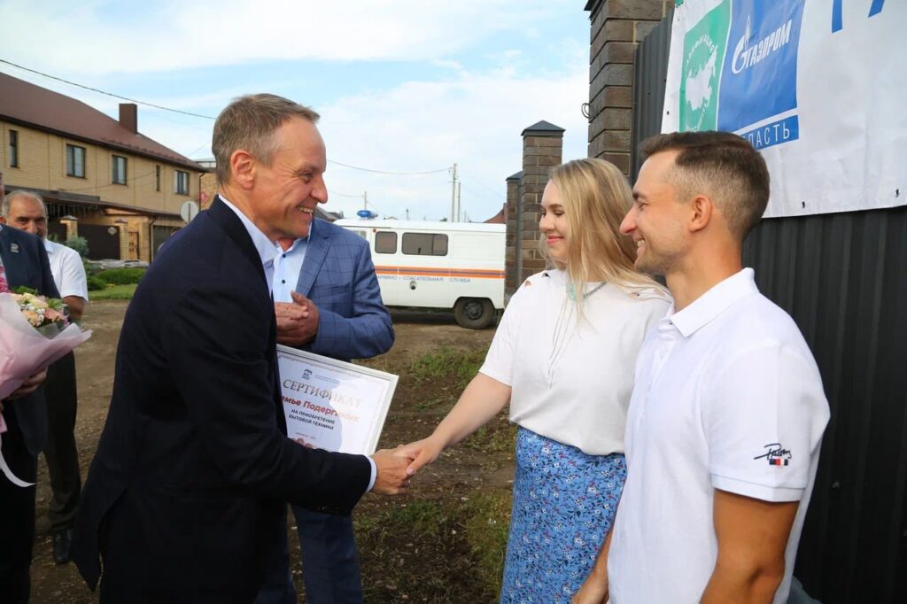 В рамках мероприятия Александр Сидякин также подарил семье Подергиных сертификат на покупку бытовой техники.