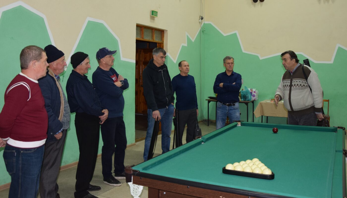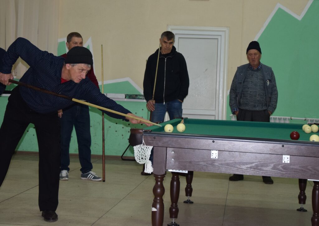 Этот немногочисленный коллектив собирается по вечерам в районном доме культуры и устраивает любительские поединки – для души, для общения по интересу. Прошлой осенью удалось даже провести турнир по бильярду среди трудовых коллективов, заметно подстегнувший тех, кто им давно и серьёзно увлекается. К их числу можно отнести Сергея Пашкова, Александра Панина, Александра Гревцева, Фёдора Новикова, Анатолия Кулешова, Анатолия Севостьянова, Сергея Окань, Александра Еркаева, Виктора Явнова. Все они уже перешагнули шестидесятилетний рубеж, но не теряют интереса к активному образу жизни, а посему, как только завершается сезон домашних дел во дворах, они начинают новый – бильярдный. Собираются по вечерам, играют, общаются, привлекая в свои ряды интересующихся болельщиков. «Пока у нас неважно получается, но зато появился интерес, зовущий приходить сюда каждый день», – признаётся Виктор Ишутин, как раз один из таких.